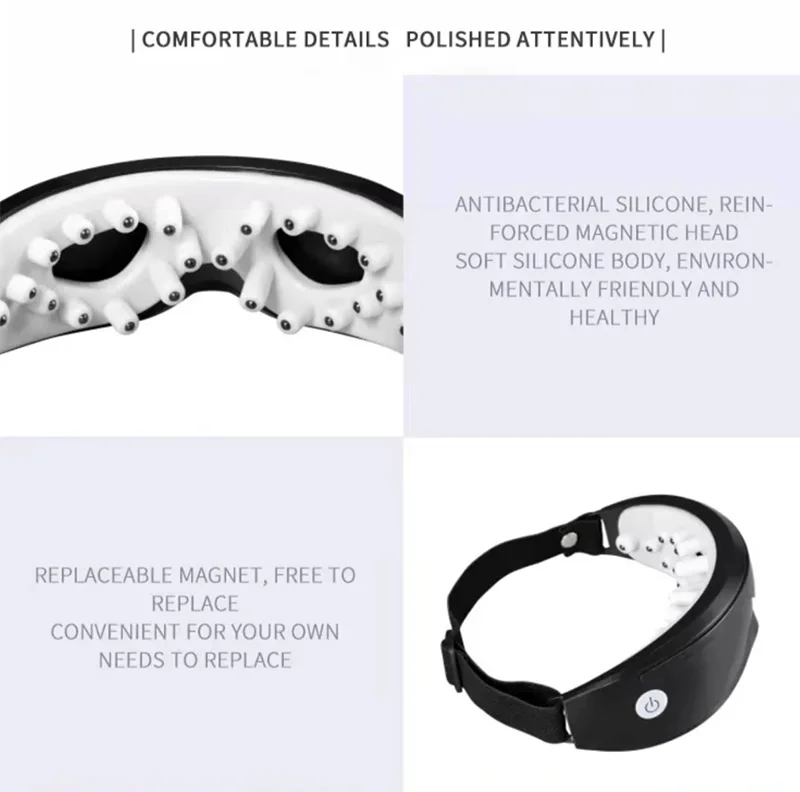 Dale a tus ojos el descanso que se merecen con nuestro Masajeador Ocular Inteligente. Diseñado para combatir la fatiga visual causada por largas horas frente a pantallas, el estrés y el cansancio diario, este dispositivo combina la antigua terapia magnética con la tecnología de vibración moderna para ofrecerte una experiencia de relajación profunda y revitalizante.
