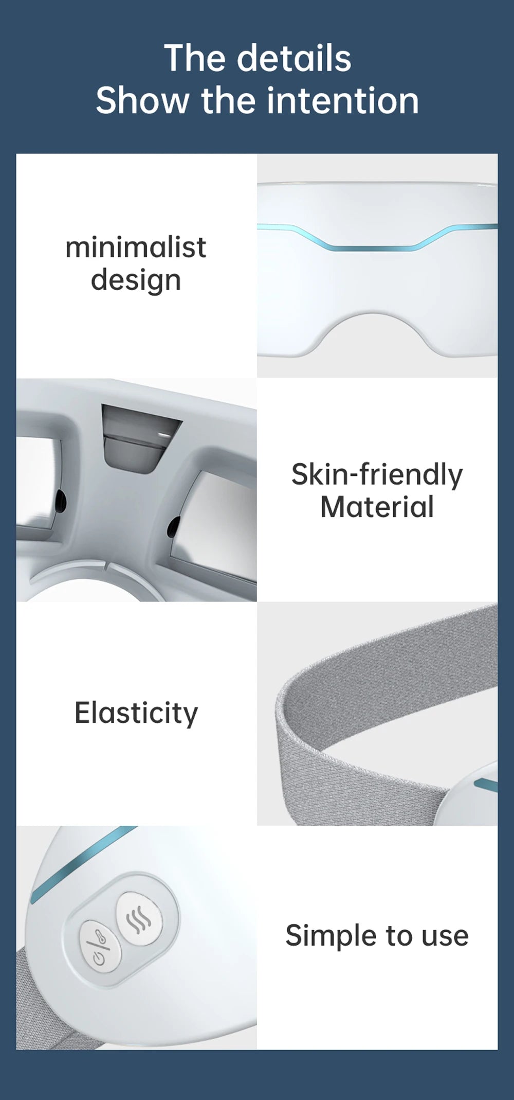 El SMVP utiliza una combinación inteligente de compresión de aire y niveles de vibración ajustables para ofrecer un masaje completo y personalizado. La presión de aire simula el toque de un masajista profesional, aliviando la tensión y la fatiga muscular, mientras que las vibraciones precisas estimulan los puntos clave alrededor de los ojos, promoviendo una relajación profunda y un bienestar duradero.